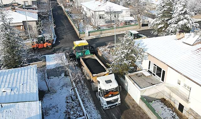 Develi Belediyesi kar ve kış soğuklarına rağmen sıcak asfalt çalışmalarına devam ediyor.