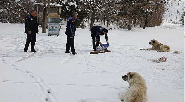 Develi Belediyesine bağlı zabıta ekipleri dünden beri etkisini gösteren kar yağışının ardından yiyecek bulmakta zorlanan sokak hayvanlarının aç kalmaması için yem ve mama bıraktı.