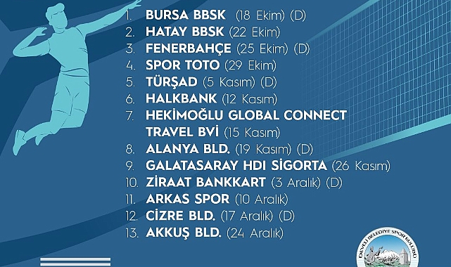 DEVELİ BELEDİYESPOR’UN İLK YARI FİKSTÜRÜ BELLİ OLDUAXA Sigorta Efeler Ligi fikstürü belli oldu. İlk devre 18 Ekim-24 Aralık tarihleri arasında oynanacak. Sezona başarılı transferlerle başlayacak olan Develi Belediyspor’un ilk rakibi Bursa BBSK olacak. Deplasmanda oynanacak olan maçta Develi Belediyespor galibiyet hedefliyor.