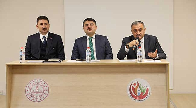 Rehberlik ve Araştırma Merkezinin toplantı salonunda yapılan istişarede ilk sözü alan İlçe Milli Eğitim Müdürü Murat Toprak “Develi’deki öğrencilerin akademik başarısını artırmak için böylesi bir projenin hazırlanmasında bizlere ön ayak olan Sayın Kaymakamımız Mehmet Tunç başta olmak üzere projemizin paydaşları olan Belediye Başkanımız Mehmet Cabbar’a ve Öksüt Madenciliğe çok teşekkür ediyorum” dedi. Proje kapsamında toplam sekiz farklı alanda öğrencilere destek olunacağını belirten Belediye Başkanımız Mehmet Cabbar “Geleceğimiz olan gençlerin daha donanımlı yetişmesine imkân sağlamak amacıyla oluşturduğumuz bu projemizin hayata geçirilmesiyle Develimizin eğitimine büyük katkı sağlanacaktır. Bunu da okullarımızın idareciliğini yapan siz kıymetli müdürlerimiz sayesinde yapacağız. En önemli yatırım olan eğitime katkı sağlayacak böylesi bir projeyi hayata geçiren ve bizlere bu anlamı projede yer veren Sayın Kaymakamımız Mehmet Tunç’a çok teşekkür ediyor; projenin hayırlara vesile olmasını diliyorum” dedi. Projenin öğrencilerin başarısında önemli rol üstleneceğini belirten Kaymakamımız Mehmet Tunç “İlçemiz eğitimine büyük destek sağlayacak olan bu projenin başarısı bizlere bağlıdır. Eğer pedagojik olarak doğru yöntemleri izler, gençlerimizin gönül teline dokunur ve hasbi olursak başarılı olacağımıza inanıyorum. Gençlerimizin geleceğini güzelleştirmek onların başarı grafiğini yükseltmek amacıyla çıktığımız bu yolda hepimize büyük işler düşmektedir. Rabbim yardımcımız olsun, hayırlı olsun” dedi.