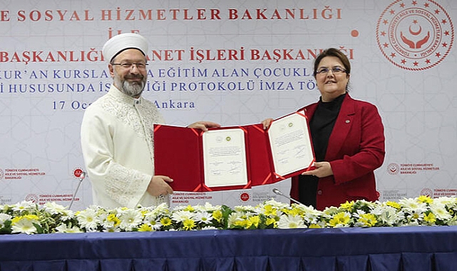 Aile ve Sosyal Hizmetler Bakanlığı ile Diyanet İşleri Başkanlığı arasında, ekonomik olarak dezavantajlı ailelerin çocuklarının 4-6 yaş Kur'an kursu giderlerinin devlet tarafından karşılanması için protokol imzalandı.