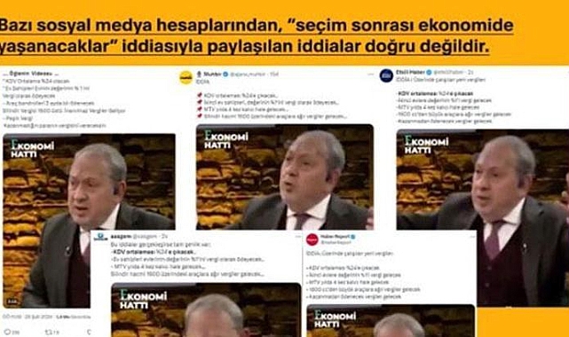 İletişim Başkanlığı Dezenformasyonla Mücadele Merkezi, bazı sosyal medya hesaplarından, seçim sonrası ekonomide olumsuzluk yaşanacağı yönünde yapılan paylaşımlardaki iddiaların doğru olmadığı belirtildi.Dezenformasyonla Mücadele Merkezi'nden yapılan açıklamada, "Bazı sosyal medya hesaplarından, 'seçim sonrası ekonomide yaşanacaklar' iddiasıyla paylaşılan iddialar doğru değildir. Hazine ve Maliye Bakanlığının ve ilgili kurumların iddia edilen konulara ilişkin herhangi bir çalışması bulunmamaktadır. Ekonomideki tüm tarafların karar alma sürecini etkilemeyi amaçlayan ve seçim sürecinde piyasaları manipüle edebilecek spekülatif açıklamalara itibar etmeyiniz" denildi.Hazine ve Maliye Bakanı Mehmet Şimşek de Dezenformasyonla Mücadele Merkezi'nin sosyal medya hesabından yapılan açıklamayı kendi hesabından paylaştı.