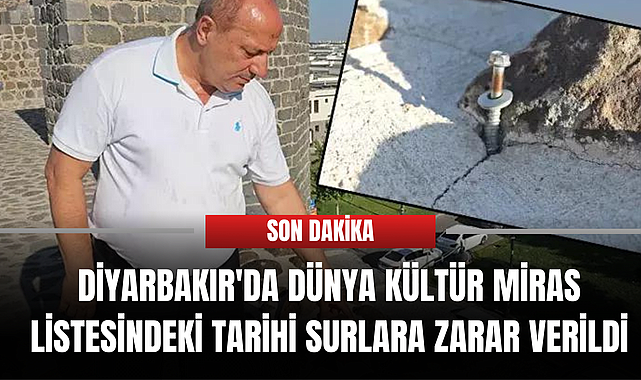 Diyarbakır'da UNESCO Dünya Kültür Mirası Listesi'ndeki 5 bin 799 metre uzunluğundaki tarihi surlara kimliği belirsiz kişi veya kişilerce afiş, pankart ve poster asmak için çiviler çakıldı. Kültür mirasına yönelik tahribat tepkilere yol açarken, Diyarbakır Kültür, Turizm ve Musiki Derneği Başkanı Kenan Aksu sorumluların bulunup, cezalandırılmasını istedi.UNESCO tarafından 2015'te Dünya Kültür Miras Listesi'ne alınan, görünümü 'kalkan balığı' şeklinde olan, Çin Seddi'nden sonra en uzun sur olma özelliğini taşıyan 5 bin 799 metre uzunluğundaki Diyarbakır Surları'na, kimliği belirsiz kişi veya kişilerce çiviler çakıldı. O çivilere de direkler monte edildi. Daha önce de pankart, poster ve afiş asmak için tarihi surlara çiviler çakılırken, kültür mirasına yönelik tahribat tepkilere neden oldu.