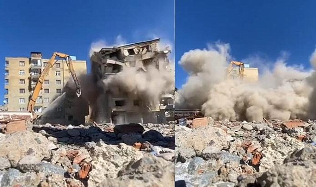 Kahramanmaraş merkezli depremlerden etkilenen kentlerden olup, 1'i boş 7 binanın yıkıldığı Diyarbakır'da, ağır hasarlı yapıların yıkım işlemleri sürüyor. Bağlar ilçesi Mevlana Halit Mahallesi'ndeki 8 katlı bina dün, kontrollü yıkım sırasında çöktü. Çökmeyle birlikte çevreyi toz bulutu kapladı. O anlar, cep telefonu kamerasıyla kaydedildi.