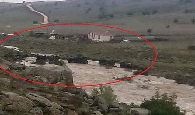 Diyarbakır'ın Çermik ilçesinde etkili olan sağanak ile birlikte dere taştı, derme çatma köprü yıkıldı.