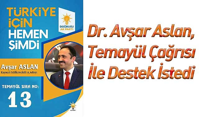 AK Parti 28. Dönem Kayseri Milletvekili Aday Adayı Dr. Avşar Aslan, bugün yapılan temayül yoklaması için hem çağrıda bulundu hemde destek istedi.