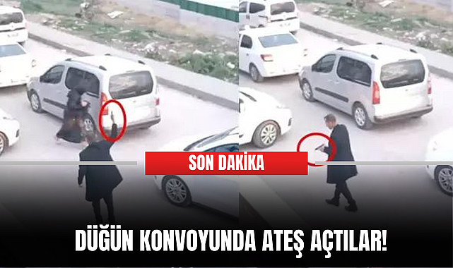Bursa'nın İnegöl ilçesinde, düğün konvoyu düzenlendiği sırada araçlardan inen kişiler, ellerindeki tabancalarla havaya ateş açtı. O anları bir vatandaş cep telefonuyla görüntüledi.