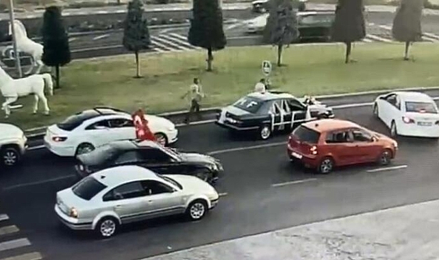 Düğün konvoyunda 'drift' yapan otomobilin..