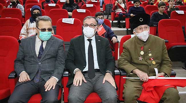Saygı duruşu ve İstiklal Marşı’nın ardından etkinlikte öğrenciler tarafından Çanakkale şiirleri okundu. Daha sonra Çanakkale Geçilmez adlı söyleşi programını gerçekleştirmek üzere sahneye çıkan 1915 yılında Çanakkale’de Conk Bayırı’nda savaşarak yaralanıp gazi olan, 1922’de Dumlupınar’da, 30 Ağustos Meydan Savaşı’nda gösterdiği kahramanlıkla büyük başarı göstererek Atatürk tarafından İstiklal Madalyası ile ödüllendirilen ve 1994 yılında 110 yaşında vefat eden son Çanakkale Gazisi Hüseyin Kaçmaz’ın oğlu, Dünya Barış Elçisi Emekli Öğretmen araştırmacı yazar Turgut Kaçmaz gazi babasının Çanakkale anılarını anlattı. Babasının katıldığı Çanakkale ve Balkan savaşlarında yaşananları anlatan Turgut Kaçmaz, "Babam bana savaşlarda yaşananları anlatırken gözleri dolardı. Özellikle, Çanakkale Savaşı'nda çok büyük kahramanlık örnekleri gösterilmişti. Gazi Mustafa Kemal Atatürk'ün dediği gibi, 'Çanakkale anlatılmaz, Çanakkale Çanakkale'de yaşanır' herkesin Çanakkale'yi görmesini isterim. 253 bin şehidimizin olduğu yerdir Çanakkale. Bir metrekareye ortalama altı bin merminin düştüğü yerdir Çanakkale. Dedelerimiz savaş yıllarında çok zor imkanlar altında mücadele ediyorlardı. Günü geldi mi aç kalıyorlardı. Dedelerimiz aç kaldığı için biz şimdi tokuz" dedi.