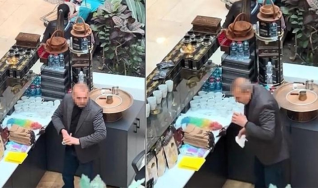Bir alışveriş merkezinde kahve satışı yapan dükkanda, işletmeci H.Z.'nin fincanları tükürerek temizlediği görüntüler, yabancı bir turist tarafından kayıt altına alınıp, sosyal medyada paylaşıldı.