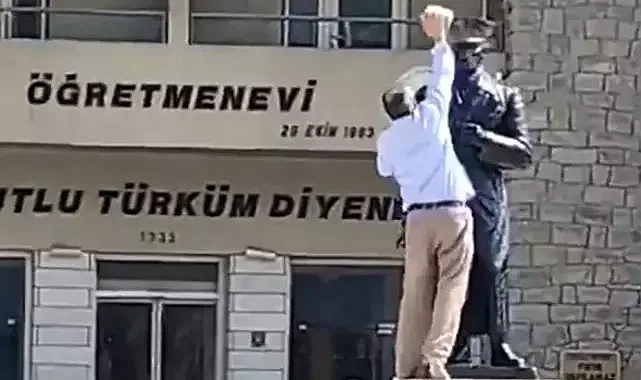 Elazığ'da kent merkezinde bulunan Atatürk heykeline elindeki taş ile saldıran şüpheli, gözaltına alındı.Olay, öğle saatlerinde Gazi Caddesi'nde bulunan eski öğretmenevi önünde meydana geldi. Buradaki Atatürk heykeline çıkan bir kişi, heykelin baş kısmına taşla vurmaya başladı.Çevredekiler tepki gösterince şüpheli, olay yerinden uzaklaştı. İhbarla bölgeye gelen polis, inceleme sonrası şüpheliyi yakaladı. Şizofreni hastası olduğu belirtilen şüphelinin emniyetteki işlemleri sürüyor. VALİLİKTEN AÇIKLAMAElazığ'da kent merkezinde bulunan Atatürk heykeline elindeki taş ile saldıran şüphelinin işlemleri devam ederken, valilik konu ile ilgili açıklama yaptı. Açıklamada, "14.07.2024 tarihinde saat 15.20 sıralarında İlimiz merkez Gazi Caddesi üzerinde bulunan eski öğretmenevi önündeki Atatürk anıtına, psikolojik sorunları olduğu öğrenilen H.K. ismindeki şahıs tarafından saldırı gerçekleştirilmiştir. İlgili kişi İl Emniyet Müdürlüğü'ne bağlı ekiplerce yakalanarak gözaltına alınmıştır. Cumhuriyet Başsavcılığı tarafından soruşturma başlatılmıştır" denildi.