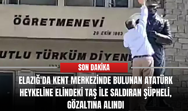 Elazığ'da kent merkezinde bulunan Atatürk heykeline elindeki taş ile saldıran şüpheli, gözaltına alındı
