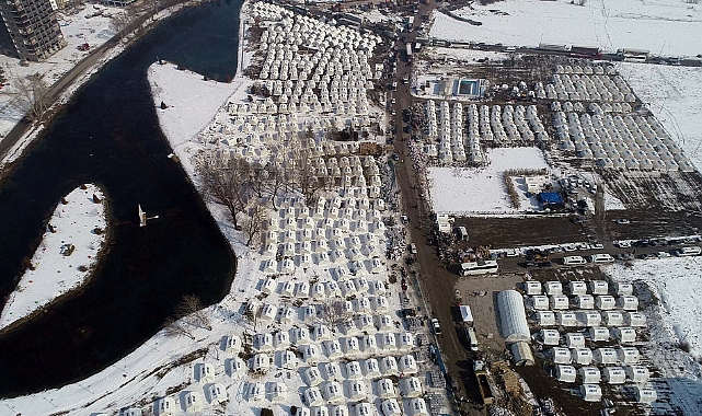 Elbistan ilçesinde yaşanan 7.7 ve 7.6 büyüklüğündeki depremin ardından bir yandan yıkılan binalarda arama çalışmaları sürerken, diğer yandan da depremin yaraları sarılıyor. Yaşanan deprem sonrası ilçede iki farklı bölgeye toplam 1500 adet çadır kuruldu. Ekiplerin çadır kurma çalışmaları devam ediyor. Dışarıda kalan kişiler çadırlara yerleştiriliyor. Pınarbaşı Mahallesi’ne kurulan 700 adet çadır dron ile görüntülendi. Çadır kentte yaşayan Fethiye Kısa, "Deprem çok kötüydü uykumuz arasında yakalandık. Öleceğimizi zannettik. Çok kötü sarsıldık. Deprem durduktan sonra dışarıya çıktık. Öğlen yeniden deprem oldu o da çok felaketti. Bizim için kabuslu günler oldu. Çok şükür şimdi iyiyiz. Yardımlarımız geldi. Çadırlarımız kuruldu. Allah devletimizden ve milletimizden razı olsun. İlk gün çok zorluk çektik ama şimdi her şey var. Herkes birlik oldu" diye konuştu.