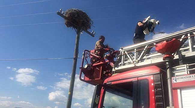 Elektrik direğinde mahsur kalan leylek yavruları koruma altına alındı
