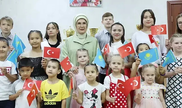 Cumhurbaşkanı Recep Tayyip Erdoğan'ın eşi Emine Erdoğan, Astana'da Zor Yaşam Koşullarındaki Çocuklara Destek Merkezi'ni ziyaret etti.Şanghay İşbirliği Örgütü 24'üncü Devlet Başkanları Zirvesi'ne katılmak üzere Kazakistan'ın başkenti Astana'ya gelen Cumhurbaşkanı Erdoğan'a eşlik eden Emine Erdoğan, Astana Valiliğine bağlı Zor Yaşam Koşullarındaki Çocuklara Destek Merkezi'ni ziyaret ederek, burada barınan çocuklar ve gençlerle bir araya geldi.Merkezde 3-15 yaş aralığında Kazak, Özbek ve Rus çocuklardan oluşan 76 öğrencinin çalışmaları hakkında yetkililerden bilgi alan Emine Erdoğan, derslikleri gezerek çocuklara hediyeler verdi. Emine Erdoğan, merkezin duvarında asılı 2017'de yaptığı ziyarete ilişkin fotoğrafları da inceledi.Türk İşbirliği ve Koordinasyon Ajansı Başkanlığının (TİKA) da destek verdiği merkezdeki çocuklar şiirler okudu, yaptıkları çalışmaları sergiledi. Merkez yetkilileri de Türkiye'nin desteklerinden ve Emine Erdoğan'ın ziyaretinden büyük memnuniyet duyduklarını ifade ederek, teşekkür etti.Emine Erdoğan'a, Kazakistan Sağlık Bakanı Akmaral Sharipbayevna, TİKA Astana Koordinatörü Hikmet Özdenoğlu ve yetkililer eşlik etti.
