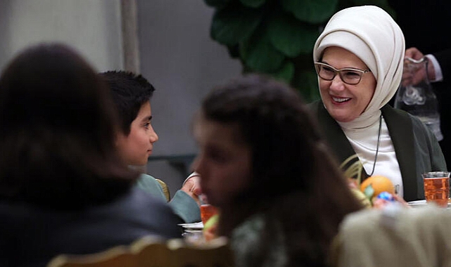 Emine Erdoğan, Aile ve Sosyal Hizmetler Bakanlığına bağlı sevgi evlerinde devlet koruması altında yaşayan çocuklara Devlet Konukevi Huber Yerleşkesi'nde iftar daveti verdi. Çocukları kapıda karşılayan Erdoğan, onlarla tek tek ilgilenip sohbet etti. İftar öncesinde Emine Erdoğan ile Aile ve Sosyal Hizmetler Bakanı Derya Yanık'la geleneksel ramazan eğlencesi Hacivat-Karagöz gölge oyunu gösterisini izleyen çocuklar doyasıya eğlendi. Erdoğan ve Yanık, programda 5 ila 15 yaş arasındaki yaklaşık 30 çocukla iftar yaptı. Çocuklardan biri, iftar sırasında Emine Erdoğan'ın yanına gelip yazdığı mektubu ve minik bir oyuncağı verdi.Bunların Cumhurbaşkanı Erdoğan'a ulaştırılmasını isteyen çocuk, "Lütfen bunu Cumhurbaşkanımıza okutun, hediyemi de verin, benden selam söyleyin." dedi. Emine Erdoğan da mektubunu ve selamını bizzat ileteceğine dair söz verdi. İftarın ardından alana kurulan stantlarda çocuklara ramazan şerbeti, patlamış mısır, pamuk şekeri ve elma şekeri ikram edildi. Çocuklar için en büyük sürpriz ise oyuncak ramazan davulu oldu. Davula tokmakla vurarak içine gizlenen şeker ve oyuncakları çıkaran çocuklar eğlenceli anlar yaşadı. Programın sonunda okul çantası ve kırtasiye malzemesi hediyelerini alan çocuklar, Emine Erdoğan'a, sarılarak veda etti."YANKILANAN NEŞELİ GÜLÜŞLERİ, EN BÜYÜK HAZİNEMİZ"Emine Erdoğan, çocuklarla iftarda bir araya geldiği programa ilişkin sosyal medya hesabından paylaşımda bulundu. Erdoğan, çocukluğun hayat defterinin, her şeyin sevgi ile yazılabileceği ilk sayfası olduğunu belirterek, mutlu, umutlu ve güven dolu cümlelerle yazılmış bir çocukluğun her çocuğun hakkı olduğunu vurguladı.Emine Erdoğan, paylaşımında şu ifadelere yer verdi: "İftar soframız sevgi evlerimizde kalan çocuklarımız için kuruldu. Birlikte Hacivat ile Karagöz gölge oyununu izledik. Yankılanan neşeli gülüşleri, en büyük hazinemiz. Bu vesileyle, yüreklerini devlet himayesindeki çocuklarımıza sonsuz sevgi ile açan bütün koruyucu ailelerimize teşekkür ediyorum. Tüm kalbimle, insanlığın emaneti olan melek çocuklarımızı, kanatları altına alan koruyucu aile sayımızın artmasını diliyorum. Tüm çocuklarımızı sevgi ve muhabbetle kucaklıyorum. Her birinin mesajını Başkan dedelerine mutlulukla ulaştıracağım."