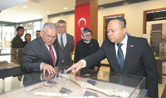 Büyükşehir Belediye Başkanı Dr. Memduh Büyükkılıç, Endonezya Büyükelçisi Achmad Rizal Purnama’ya fuaye alanında dünya paleontoloji tarihine ışık tutan 7,5 milyon yıllık fosillerin ayaklandırma çalışmalarının yer aldığı sergiyi gezdirerek, çalışmalar hakkında bilgiler verdi.