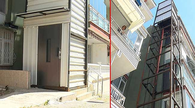 Büyükçekmece, Kumburgaz’da 7 katlı binanın en üst kat sakini, evine ulaşabilmek için binanın dışından asansör yaptırdı. Fakat yaptırdığı asansör girişteki engelli rampasını kapattığı için engelli komşusu evine giremeyerek mağdur oldu.