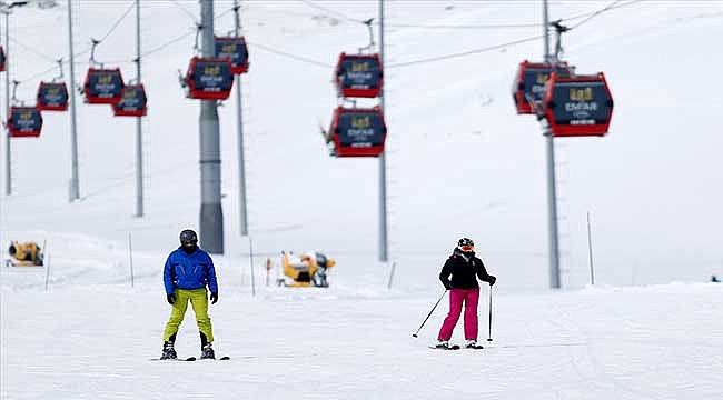 Türkiye'nin önemli kayak merkezlerinden Erciyes Kış Sporları ve Turizm Merkezi'ni ziyaret eden kayakseverler, yoğunluk oluşturdu.