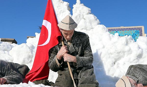 Erciyes'ten getirilen karların üzerinde Sarıkamış şehitleri anıldı
