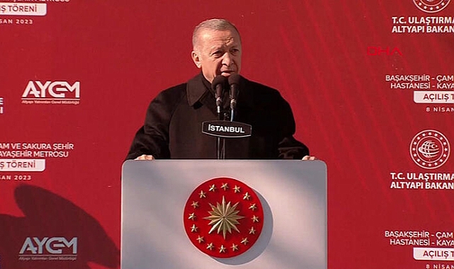 Başakşehir Çam ve Sakura Şehir Hastanesi-Kayaşehir Metro hattı, Cumhurbaşkanı Recep Tayyip Erdoğan'ın katılımıyla hizmete açılıyor. Açılışta konuşan Erdoğan, İstanbul için önemli bir ulaşım hattını hizmete soktuklarını belirterek, "Biz İstanbul'a ve İstanbullulara aşığız. Biz bu aziz şehri kalbimizin tüm hücreleriyle seviyoruz. Böylesine Bir muhabbetle bağlı olduğumuz İstanbul'u kimse kusura bakmasın birilerinin ihtiraslarına kurban edemeyiz. Fatih'in emaneti olan bu güzel şehrin gün be gün karanlığa sürüklenmesine seyirci kalamayız. Evimiz, yuvamız, göz bebeğimiz İstanbul'a karşı sorumluluklarımızın gereğini yerine getirmekten kimse bizi alıkoyamaz" dedi.rdoğan, "Bu anlayış nerede bir eksik, sıkıntı, acil ihtiyaç varsa müdahale ediyor, gereken neyse yapmaktan çekinmiyoruz. Ulaştırma Bakanlığımız asıl sorumlusu becerip işi devam ettiremediği için bu metro hattını, maalesef, belediye yapmadığı için bakın üç yılı geçti. Bu büyükşehir belediyesi ne yazık ki İstanbul'a evet bir çivi dahi çakamadı. Tabii buna asıl dersi ben inanıyorum ki 2024 seçimlerinde İstanbul verecek. Ama şimdi 14 Mayıs'ta parlamento seçimlerinde bunlara dersi verecek. Bakın bu hat devralındığında fiziki ilerleme oranı sadece neydi biliyor musunuz, Yüzde 5. Yani kazılmış yüz metrelik tünel ve dörtte biri ancak biten viyadük dışında ortada hiçbir şey yoktu. Gece gündüz demeden çalışarak 24 ay içinde metro hattını açılışa hazır hale getirdik. Hattımızın test ve devreye alma işlerini de başarıyla tamamladık. Bugün de sizlerin hizmetine vermenin gururunu yaşıyoruz" diye konuştu.Konuşmasında Kılıçdaroğlu'nu da eleştiren Erdoğan, "Birileri seccadeye ayaklarıyla basabilir. Kıblesi Kabe olmayanın seccadesi nereye bakar bilmiyorum" şeklinde konuştu.Açılışta Cumhurbaşkanı Erdoğan'a Türkiye Büyük Millet Meclisi Başkanı Mustafa Şentop, Ulaştırma ve Altyapı Bakanı Adil Karaismailoğlu, Sanayi ve Teknoloji Bakanı Mustafa Varank, Ticaret Bakanı Mehmet Muş ve İstanbul Valisi Ali Yerlikaya da eşlik etti.
