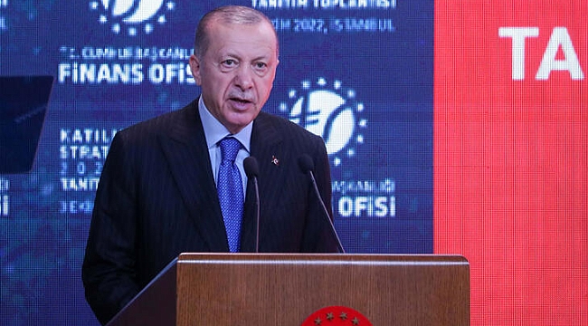 Cumhurbaşkanı Recep Tayyip Erdoğan Dolmabahçe Ofisi'nde düzenlenen Katılım Finans Strateji Belgesi Tanıtım Toplantısı'na katıldı. Hazine ve Maliye Bakanı Nureddin Nebati, Azerbaycan Ekonomi Bakanı Mikayıl Cabbarov ve finans sektörünün temsilcilerinin de katıldığı programın açılış konuşmasını Cumhurbaşkanı Erdoğan yaptı. Erdoğan ," Salgının ve savaşın tetiklediği enerji ve emtia fiyatlarındaki artışın derinleştirdiği küresel ekonomik krizin gelişmiş ülkeler başta olmak üzere tüm ekonomileri derinden etkilediği bir dönemden geçiyoruz. Küresel krizlerin ardının kesilmediği son yıllarda Türkiye uzunca bir süredir yaşadığı siyasi ve ekonomik badirelerden elde ettiği tecrübeyle kendini diğer ülkelerden ayrıştırmayı başarmıştır. Daha açık konuşmak gerekirse birileri son 8-9 dokuz yıldır Türkiye'yi yönetilebilir olmaktan çıkarmak için kumpastan darbeye, her yolu denediler. Bu sinsi saldırıların son mermisi de ekonomimize sıkıldı ama hesap edilmeyen bir durum ortaya çıktı. Bize kurulan tuzaklara karşı verdiğimiz mücadele bizi daha güçlü kıldı. Buna mukabil dünyadaki beklenmedik krizler bize bu tuzakları kuranların tüm zaaflarını ve zayıflıklarını açığa çıkardı. Küresel gelişmelerin etkisiyle bir süredir etkisini hissettiğimiz enflasyon meselesinin de üstesinden gelerek inşallah Türkiye yüzyılını hep birlikte inşa edeceğiz. Tabi bu arada küresel ekonomik kriz sürekli yeni sorunlara da yol açarak dünyayı kasıp kavurmayı sürdürüyor. Yaşanan sorunların en çok etkilediği alanların başında ise finans kesimi geliyor." diye konuştu.