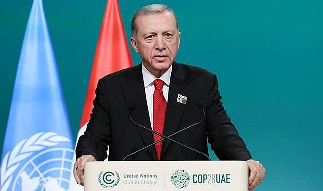 Erdoğan konuşmasında şu ifadelere yer verdi;“Dünyamız koronavirüs salgını ve Ukrayna-Rusya savaşının ardından şimdide Gazze’deki katliamların acı sonuçlarıyla karşı karşıya bulunuyor. Türkiye tüm bu krizlerde barışın yanında olmuş, adalet ve hakkaniyet temelinde çözüm için çalışmıştır. İklim değişikliğine de bu perspektiften yaklaşıyoruz. Sera gazı emisyonunda tarihi sorumluluğumuz yüzde 1’in altında olmasına rağmen kendi imkanlarımızı kullanarak çok önemli adımlar atıyoruz.“JEOTERMAL KURULU GÜCÜNDE AVRUPA’DA BİRİNCİ, DÜNYADA DÖRDÜNCÜYÜZ”2053 yılı itibariyle net sıfır emisyon hedefini gerçekleştirmeyi öngörüyoruz. 2030 senesine kadar emisyon azaltım hedefimizi 2 katına çıkardık. Bu kapsamda yıl sonu itibariyle ise 66,6 milyon ton karbondioksit emisyon azaltımı bekliyoruz. Toplam kurulu güç içerisinde yenilenebilir enerji kaynaklarının payını yüzde 50 beşe yükselttik. Bu oranla Avrupa’da 5’inci, dünyada ise 12’nci sırada yer alıyoruz. Jeotermal kurulu gücünde Avrupa’da birinci, dünyada dördüncüyüz. Hidroelektrik santrali kurulu gücünde ise Avrupa’da ikinci, dünyada dokuzuncu sıradayız. Hidrojen teknolojileri stratejimizi uygulamaya aldık. Ayrıca net sıfır emisyon hedefi bağlamında çelik, alüminyum, çimento ve gübre sektörleri karbonsuzlaşma yol haritamızı tamamladık. 2053’te yenilenebilir enerjinin payını yüzde 60 dokuzda çıkarmayı planlıyoruz.SIFIR ATIK PROJESİEşimin himayesinde başlatılan sıfır atık projesi ile atıkların geri kazanım oranını 2035 yılında yüzde 60’a taşıyacağız. Tüm bu çalışmaların maliyetinin yüksekliği hepimizin malumudur. İklim finansmanı kaynaklarını ve teknoloji transferi imkanlarına daha adil şekilde erişebilmemiz bu bakımdan büyük önem arz ediyor. 6 Şubat’ta yaşadığımız deprem felaketine rağmen ne ekonomide ne de iklim değişikliğiyle mücadeledeki hedeflerimizden hiçbir zaman kopmadık. 14 milyon insanımızı ve 11 ilimizi olumsuz etkileyen depremlerin yol açtığı yaraları hamd olsun hızla sarıyoruz. Şehirlerimizin yeniden inşasında da çevreyi korumak, iklim ve çevre dostu yapılar inşa etmek önceliklerimizin başında yer almaktadır.FİLİSTİN’DEKİ İNSANİ KRİZDeğerli dostlar, iklim krizi ile ilgili görüşlerimizi paylaşırken, hemen yanı başımızda Filistin topraklarında yaşanan insani krize değinmeden geçemeyiz. İsrail saldırıları sonucu çoğunluğu çocuk ve kadın 16 bini aşkın Filistinli masum sivilin hayatını kaybetmesi, hiçbir şekilde meşru gösterilemez. Gazze'de yaşananlar insanlık suçudur, savaş suçudur ve bu suçu işleyenlerden uluslararası hukuk önünde mutlaka hesap sorulmalıdır. Son gelişmelerle birlikte 1967 sınırları temelinde başkenti Doğu Kudüs olan bağımsız, egemen ve toprak bütünlüğüne haiz bir Filistin devletinin kurulmasının ehemmiyetini hep birlikte tekrar gördük. Türkiye olarak bunun tesis ve temini noktasında her türlü sorumluluğu almaya hazırız. ‘Dünya beşten büyüktür ve daha adil bir dünya mümkündür’ şiarımızı burada tekrar vurgulamak istiyorum.”İKLİM DEĞİŞİKLİĞİ PANELİNİN 60’INCI OTURUMUNU İSTANBUL’DA“Hükümetler arası iklim değişikliği panelinin 60’ıncı oturumunu Ocak ayında İstanbul’da gerçekleştireceğiz. Ayrıca 2026 yılında düzenlenecek Birleşmiş Milletler iklim değişikliği 31. Taraflar konferansına ev sahipliği içinde adaylığımızı açıkladık. Siz değerli dostlarımın bu kapsamda gereken desteği vereceğinizden şüphe duymuyorum.”