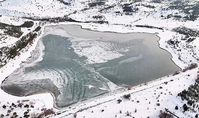 Erzincan'da buz tutan şelale, göl ve göletler dronla görüntülendi