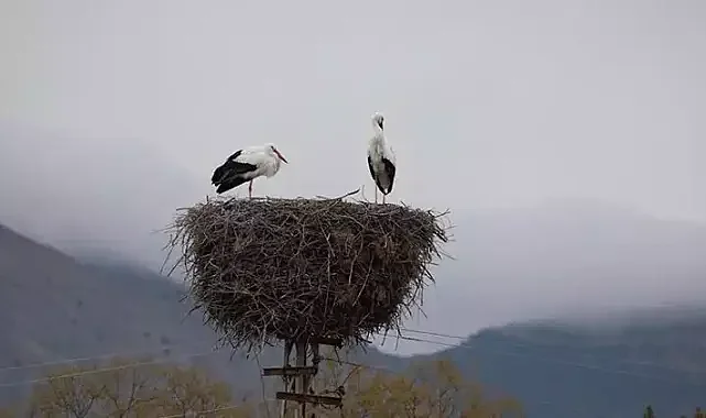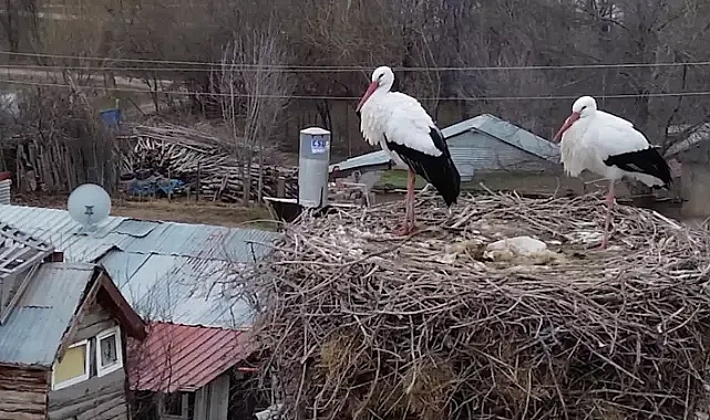 Erzincan'da Kilim köyüne yuva yapan leylekelr 10 yıldır köyden ayrılmıyor