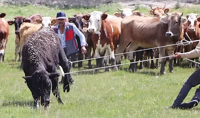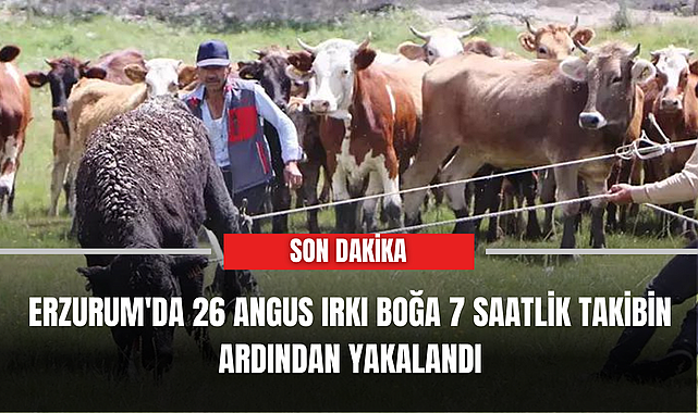 Erzurum'da 26 angus ırkı boğa 7 saatlik takibin ardından yakalandı