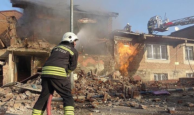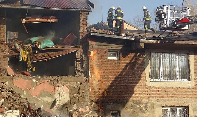 Erzurum'da doğal gaz kaynaklı patlama; 2 katlı binanın bir kısmı çöktü