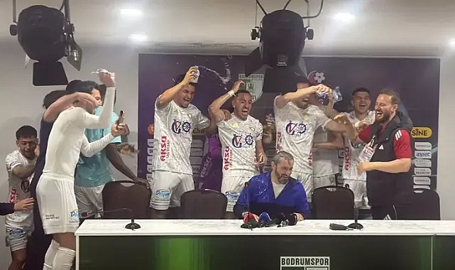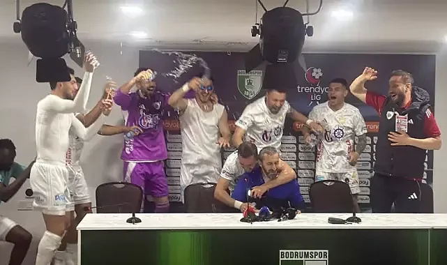 1’inci Lig’de Bodrum FK ile deplasmanda 1-1 berabere kalarak bitime 2 hafta kala 5 yıl sonra Süper Lig’e yükselmeyi garantileyen Erzurumspor’da, karşılaşma sonrası düzenlenen basın toplantısında teknik direktör Serkan Özbalta’ya futbolcularından sürpriz geldi. Toplantı sırasında içeri giren Erzurumsporlu futbolcular, gelenek gereği Özbalta’yı su şişeleriyle ıslatarak şampiyonluğu birlikte kutladı. Tecrübeli teknik adam, bu sürprizin ardından basın toplantısına yeniden başladı.