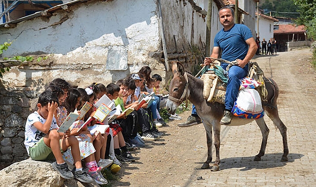 Tokat'ın Zile ilçesi Karacaören köyünden Metin Uğur (41), çevre köyleri 15 günde bir gezip, eşeğine yüklediği kitapları çocuklara ulaştırıyor. Gönüllü olarak bu işi yaptığını belirten Uğur, "Allah güç verdiği sürece de bu gönül hizmetini devam ettireceğim. Çünkü ülkemin okuyan nesillere ihtiyacı var. Kitap okuyan nesiller yetişsin istiyorum" dedi.