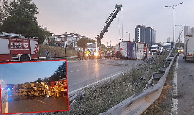 Kaza, saat 05.00 sıralarında TEM bağlantı yolunda meydana geldi. İddiaya göre, Bahçeşehir istikametinde ilerleyen Muharrem Kuru'nun kullandığı 34 YJ 9816 plakalı sebze yüklü kamyon, bilinmeyen nedenle bariyerleri aştıktan sonra karşı şeride geçerek devrildi.Kazada kamyon şoförü Muharrem Kuru araçta sıkıştı, yanında bulunan Hayrettin Can ise yaralandı.Yoldan geçenler bir yandan yardıma koşarken diğer yandan da durumu polis, itfaiye ve sağlık ekiplerine haber verdi.