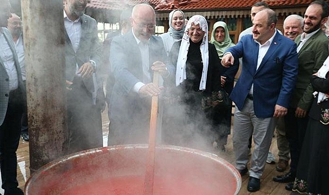 Eski Sanayi ve Teknoloji Bakanı Mustafa Varank, Bursa’da kadınlarla birlikte salça kaynatıp, gazetecilere ikram etti. Hükümetin hem Ticaret Bakanlığı hem de kalkınma ajansları vasıtasıyla üretim yapan derneklere, kooperatiflere destek verdiğini belirten Varank, "İşte o desteklerin bir yansımasını arkamızda görebiliyoruz. Gerçekten Bursa'ya gelip burayı ziyaret etmiş olan her bir vatandaşımızın memnuniyetle ayrıldığı bir işe arkadaşlarımız imza attılar" dedi.