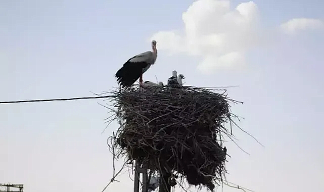 Eskiyen elektrik direği, leyleklerin yuvası oldu