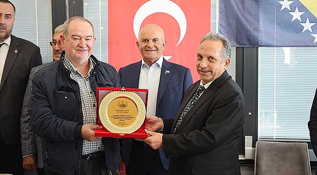 Uluslararası Balkan Kooperatifi Başkanı Hamza Yavuz da, Türkiye ile Bosna halkı arasında kardeşlik köprüsü kurulmasından dolayı Başkan Yalçın’a ve Başkan Dzafic’e plaket takdim etti.