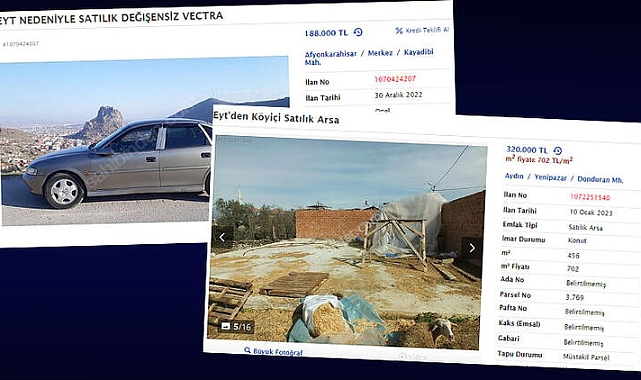 Afyonkarahisar'dan bir EYT'li, 1999 model aracını EYT nedeniyle satılığa çıkardığını belirttiği ilanda, 188 bin TL talep ediyor. İstanbul'dan bir EYT'li de 2011 model aracı için 189 bin TL istiyor. Bir satış sitesinde EYT nedenli 11 emlak, 56 araç, 3 ev aletleri ve 1 tarım makinası ilanı bulunuyor.