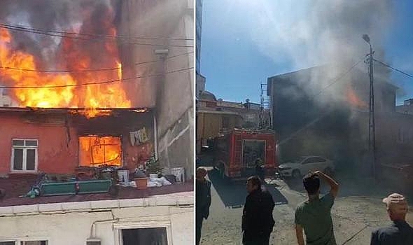 Eyüpsultan'da bir binanın çatı katı henüz bilinmeyen nedenle alev alev yandı. İtfaiye ekiplerinin müdahalesiyle kontrol altına alınan yangın çevredekilerin cep telefonu kameralarıyla kaydedildi.
