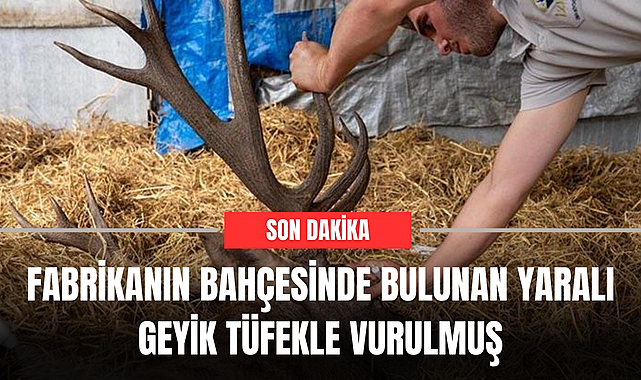 Fabrikanın bahçesinde bulunan yaralı geyik tüfekle vurulmuş