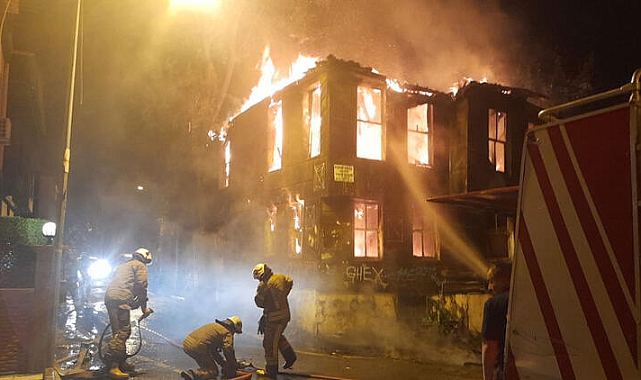 Fatih'te 2 katlı ahşap bina alev alev yandı