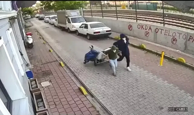 Fatih'te park halindeki motosikleti el arabasına yükleyerek çalan iki şüpheliden biri yakalandı. Şüphelilerin motosikleti çalarak el arabasıyla götürdükleri anları ise güvenlik kameralarına yansıdı.Fatih, Kumkapı'da mağdur Y.B.'ye ait bir motosiklet park edildiği yerden çalındı. Polis yaptığı çalışmalar sonucunda motosikletin çalındığı anların güvenlik kameralarına yansıdığını tespit etti.Görüntülerde; çöp toplayan şüphelilerden birinin yüzünde maske olduğu ve sokaklarda dolaştığı ardından da park halindeki motosikletin yanına yaklaştığı görülüyor. Şüpheliler daha sonra motosikleti el arabasına yükleyerek hızla olay yerinden kaçıyor. Şüphelilerin kaçtıkları anlar ise başka bir güvenlik kamerası tarafından kaydediliyor.Oto hırsızlık Büro Amirliği tarafından olayla ilgili başlatılan çalışmada polis güvenlik kamera görüntülerini takip ederek şüphelilerden Mahmut Ö.'nün kimliğini tespit edip gözaltına aldı.Şüphelinin daha önceden 2 suç kaydı olduğu ortaya çıktı. Asayiş Şube Müdürlüğünde işlemleri yapılan şüpheli adliyeye sevk edilirken, diğer şüpheliyi yakalamak için çalışmaların sürdüğü öğrenildi.