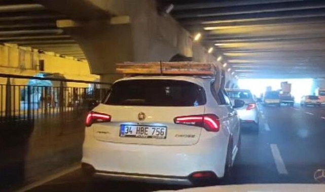 Fatih Topkapı'da seyir halindeki bir otomobilin tavanında yük taşındığı anlar trafikte ilerleyen sürücülerin cep telefonu kamerasına yansıdı. Yoğun trafikte ilerleyen otomobilin tavanındaki eşyayı, içerideki 4 kişinin ellerini camdan dışarı çıkararak tuttukları görüldü. Bir süre trafikte seyreden otomobil, O-3 TEM bağlantı yoluna girerek Bayrampaşa istikametine döndü. Kazaya davetiye çıkaran taşımacılık cep telefonu kamerasıyla görüntülendi. Görüntülerde, görüntüyü kaydeden kişinin "Elleriniz yorulmadı mı?" şeklindeki sorusuna otomobildekilerin "Hayır" yanıtını verdiği de görülüyor.