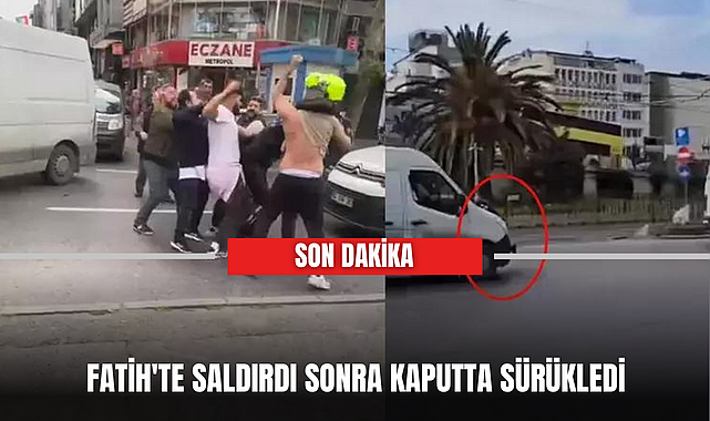 Fatih'te saldırdı sonra kaputta sürükledi