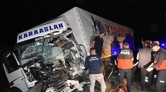 Kırıkkale'nin Delice ilçesinde akşam saatlerinde meydana gelen kazada, sürücünün kontrolünden çıkan kamyon, karşı şeride geçerek TIR'a çarptı. Feci kazada TIR sürücüsü hayatını kaybederken, 2 kişi de yaralandı.