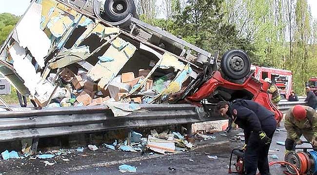Sürücü direksiyon hakimiyetini kaybedince, refüjdeki bariyerlere çarpan kamyonet, takla atarak ters döndü. Hurdaya dönen kamyonetin içinde bulunan 3 kişi sıkıştı. İtfaiye ekipleri kamyonetin içindeki 3 kişiyi yaralı olarak kurtardı. Yaralılar hastaneye kaldırılarak tedavi altına alındı. Kaza nedeniyle yol bir süre trafiğe kapatıldı. Kazanın görgü tanığı olan Ali Kaya, "Burası dik bir rampa olduğu, çok da ağır bir yükü olduğunu sanmıyorum. Nasıl olduysa önce buraya vuruyor, takla atıyor. Yaralılar kamyonetin içinden zor çıkarıldı" dedi.