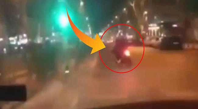 Kaza, dün gece 23.30 sıralarında Turgut Özal Millet Caddesi üzerinde yaşandı. Cadde üzerinde ilerleyen motosiklet, trafik ışıklarının bulunduğu noktada karşı şeride geçmek için yola çıkan bir kişiye çarptı. Kazada, motosikletin çarptığı yaya ve motosiklette bulunan 2 kişi yola savrularak yaralandı. Bu sırada kaza yapan motosikletin arkasından gelen otomobil, son anda durdu. Kaza anı da bu otomobilin kamerasına saniye saniye yansıdı.