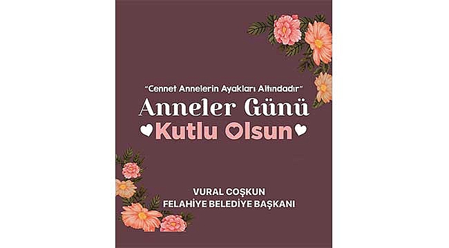 Felahiye Belediye Başkanı Vural Coşkun 8 Mayıs ' Anneler Günü' nedeniyle sosyal medya hesabından bir mesaj paylaştı. Vural Coşkun Mesajında:" Cennet’in ayaklarının altında olduğu müjdelenen, karşılıksız sevgileri ve fedakârlıklarıyla her zaman baş tacımız olan ve haklarını hiçbir şekilde ödeyemeyeceğimiz başta şehit ve gazi anneleri olmak üzere tüm annelerin “Anneler Gününü kutluyor. Vefat etmiş annelerimize Allah'tan rahmet hayattaki annelerimize sağlık, sıhhat ve hayırlı uzun ömürler diliyorum.