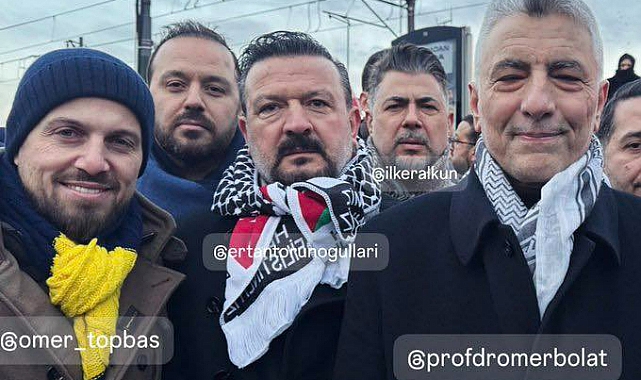 Fenerbahçe yöneticileri, Filistin'e destek için Galata Köprüsü'nde düzenlenen yürüyüşe katıldı.