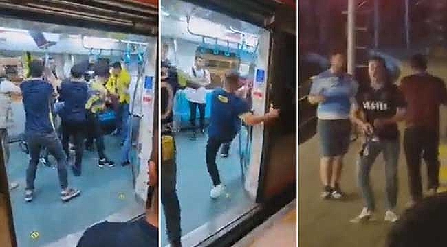Marmaray'da karşılaşan Fenerbahçe ve Trabzonsporlu taraftarlar arasında kavga çıktı. Kavga anları cep telefonu kamerasına yansıdı.